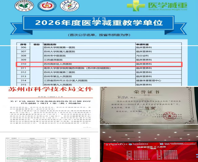 与此同时,科室在学术研究方面也有突破。科室申报的科研项目《在企业场景下医学营养治疗联合移动健康应用程序对超重/肥胖员工体重管理的研究》成功入选2025年度苏州市健康管理科研基金科技项目、苏州市科技攻关计划(医疗卫生创新)项目。