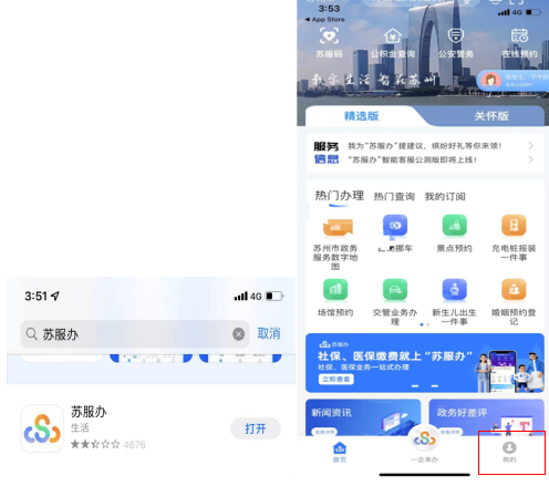 1、手机搜苏服办APP、并下载,点击我的,进行实名认证