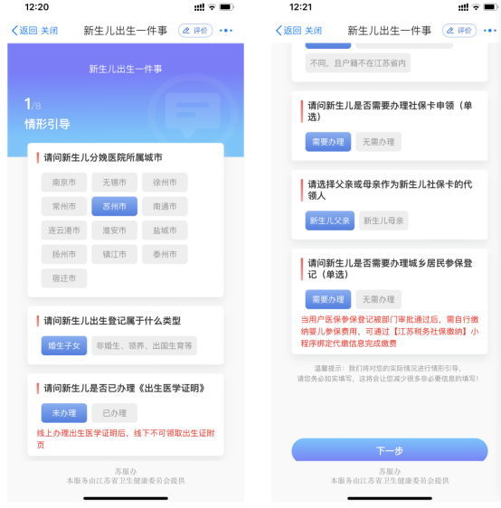 参保成功后,需用户登录微信/支付宝小程序的“江苏税务社保缴纳”,或登录“苏服办”APP的“江苏税务社保缴纳”,绑定代缴人(新生儿)信息,选择缴费年度补交参保费用。