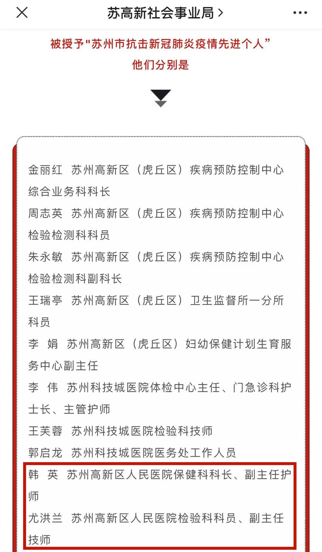 致敬身边榜样!——我院2人被授予“苏州市抗击新冠肺炎疫情先进个人”称号
