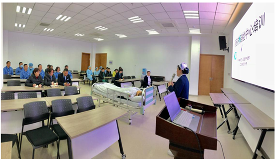 护理部束燕主任总结说,临床医护人员为患者服务,城铁工作人员为医院也是为患者服务,所以我们有共同的服务对象,这也是我们医院开展“陪检中心”这项服务的重要目的之一。城铁物业的陆琴经理对这个项目大力支持,组织工作人员积极参加,使得培训十分成功。“纸上得来终觉浅”,我们只有将演示视频与老师的实际指导相结合,再加上自身操作才能真正地做到理论与实际相结合,更好地为患者服务!