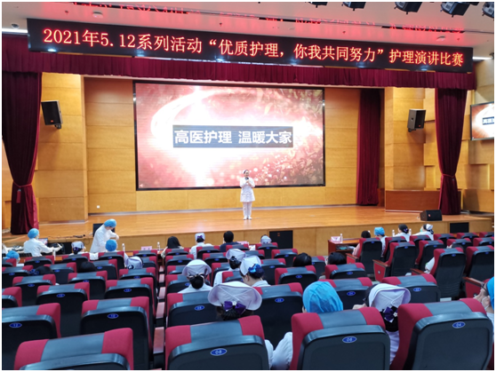 为迎接第110个5.12国际护士节,弘扬南丁格尔精神,展现我院护理人员的风采,激发护士工作热情,4月25日下午,护理部在科教楼学术报告厅举办了5.12系列活动之“优质护理你我共同努力”护理演讲比赛。