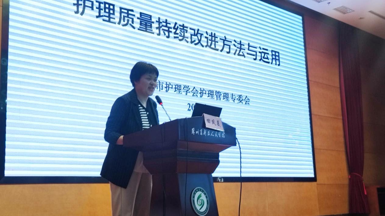 第一位授课老师田凤美主任的授课题目是《护理质量持续改进方法与运用》,深入浅出地剖析了护理质量持续改进的重要意义,为护理持续质量改进提供了新思路,鼓励各位护理骨干利用多种形式开展护理持续质量改进。