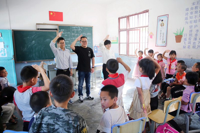 义诊结束后,我们利用下午时间,又来到白果村小学开展“爱心捐赠,传递书香”活动。我们提前了解到,这些孩子大部分都是爷爷奶奶带着,父母在外打工,过年才回家一次。孩子们都是独自上学,有些路远的要步行2个多小时;有些孩子是单亲家庭,父母离异或身亡了,家庭状况都不太好……所以,在来之前,我们就早早准备好给孩子们的书籍、书包。简短的捐赠仪式后,我们去教室和孩子们谈谈心、做游戏、唱歌。起初,学生们有些腼腆,慢慢的都接纳了我们,给我们说他们的理想、看他们的玩具、听他们背诵诗词、欣赏他们的歌谣,有活泼的还拿扇子给我扇风送凉……这些山里的孩子,穿着朴素,非常腼腆,其中几个孩子特别内向,惧怕生人,但都很有礼貌。孩子们天真单纯的笑容,让我们心头阵阵酸楚,希望笑容能一直陪伴着他们。
