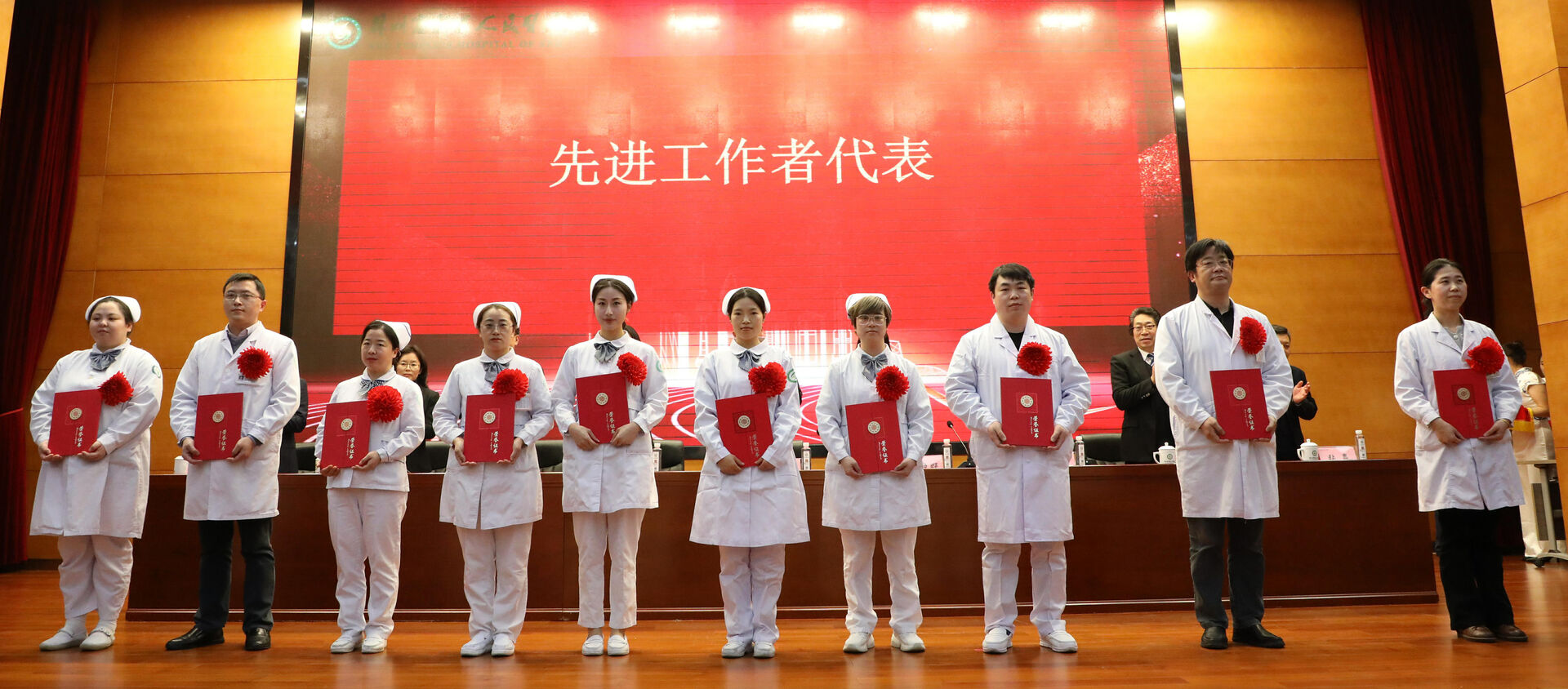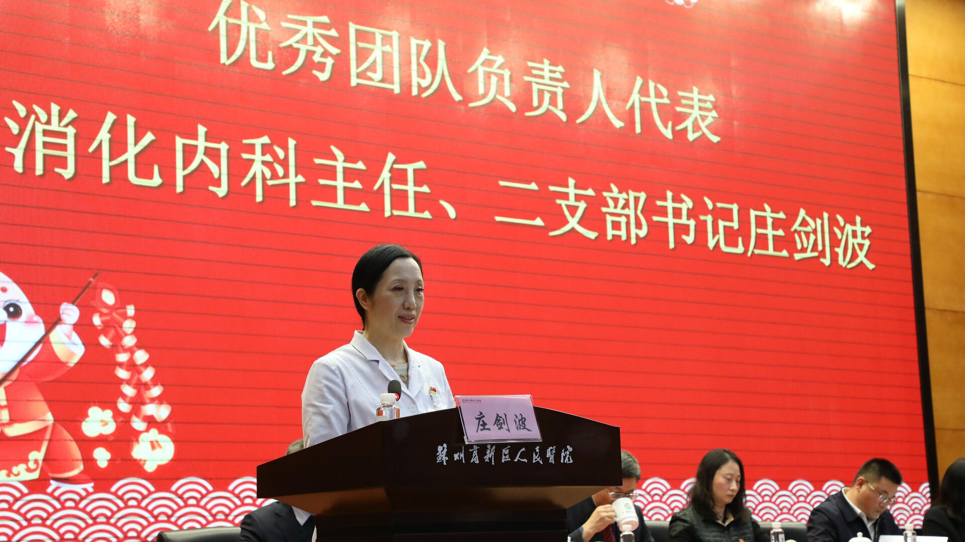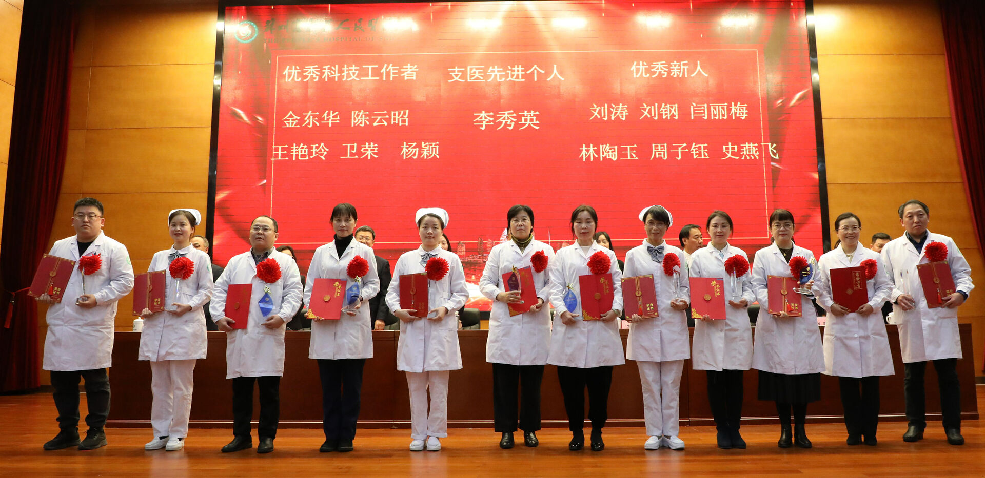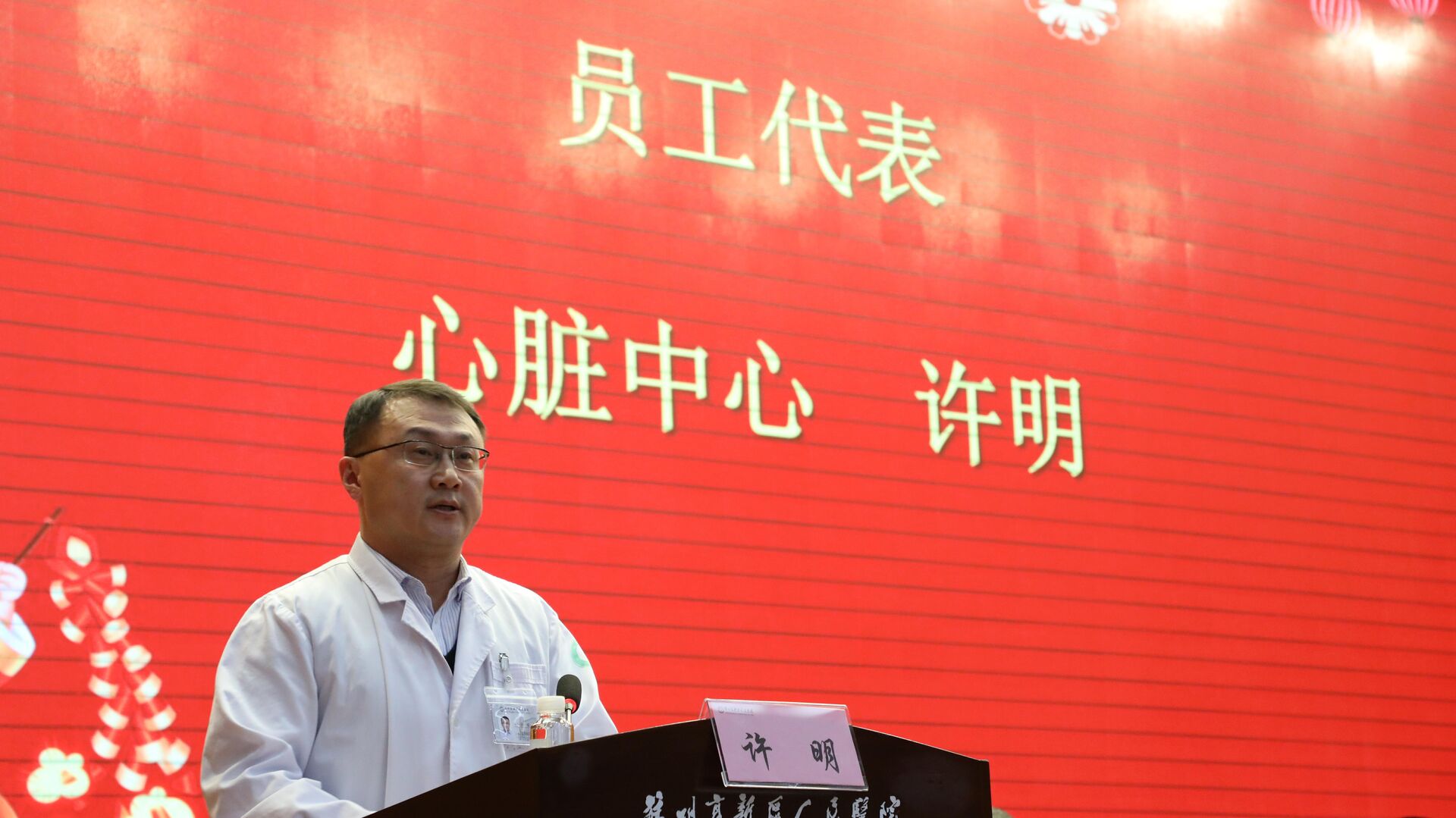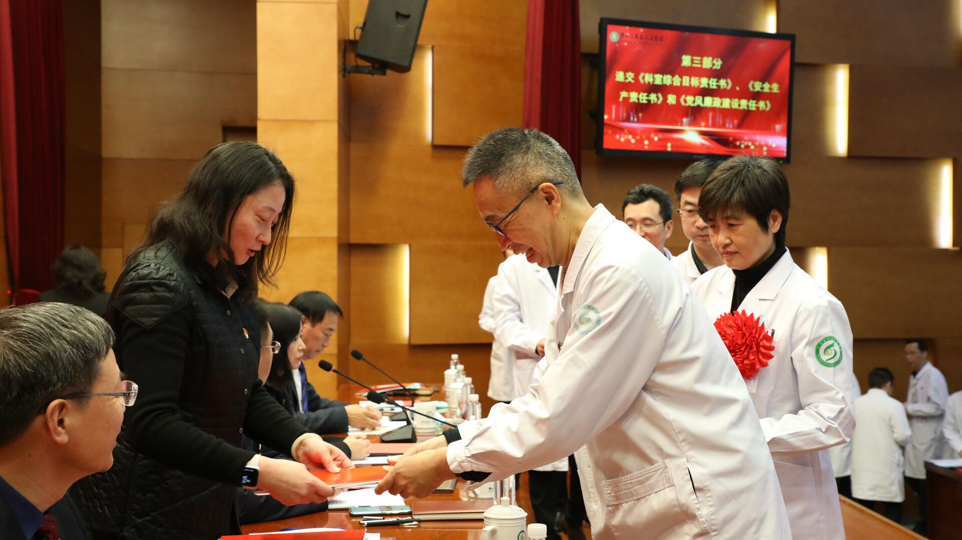 会议首先为优秀团队、优秀干部、优秀科技工作者、优秀新人、服务明星、先进工作者代表、安全生产优秀集体及个人等各类奖项进行了表彰。各科室、部门负责人向医院党委书记潘凌递交《科室综合目标责任书》、安全生产责任书和党风廉政建设责任书。消化科主任庄剑波作为优秀团队代表、心脏中心许明医生作为员工代表上台发言。他们纷纷表示,要有“等不起”的使命感,“慢不得”的紧迫感,要发扬“四敢”精神,为医院的高质量全面发展尽责尽力,为老百姓的健康保驾护航。