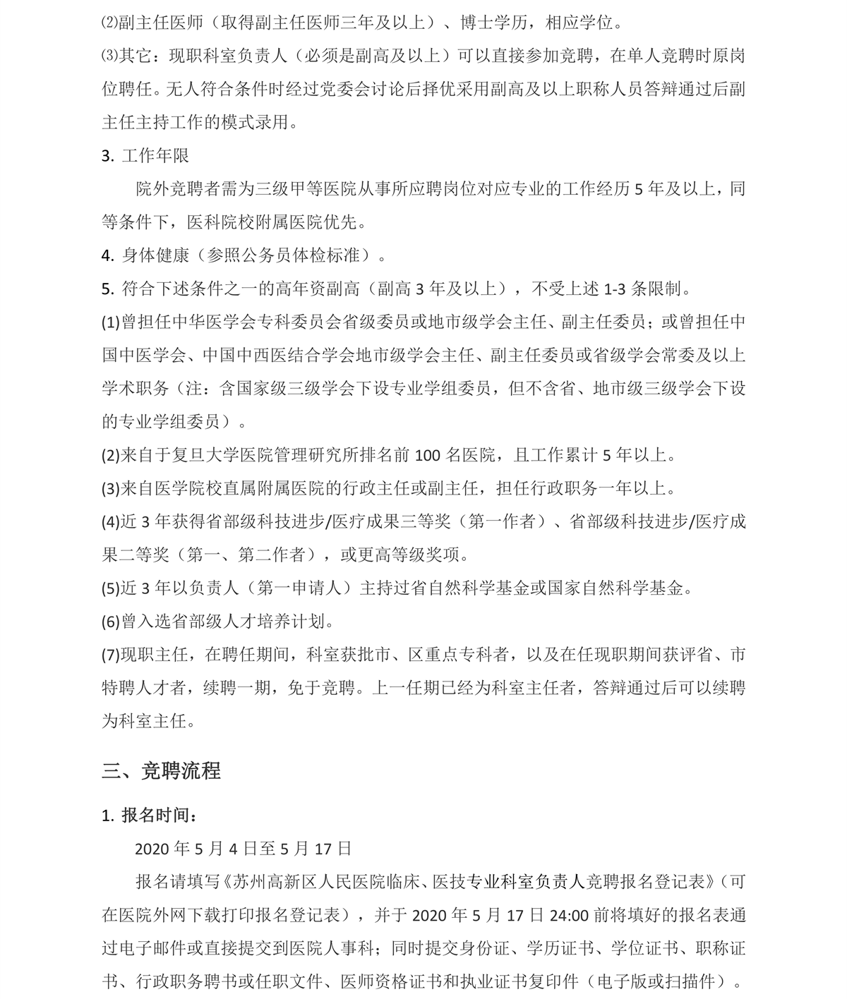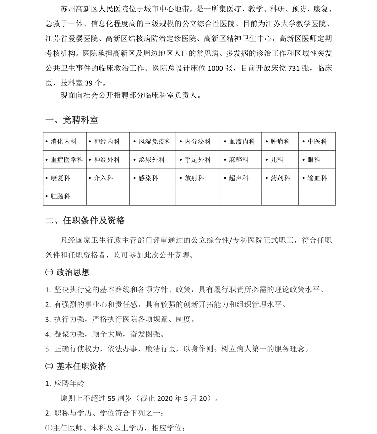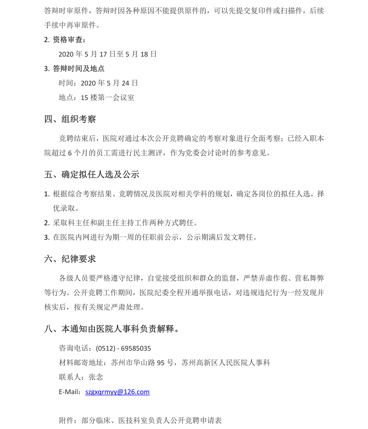 关于 部分临床、医技科室负责人公开竞聘的通知