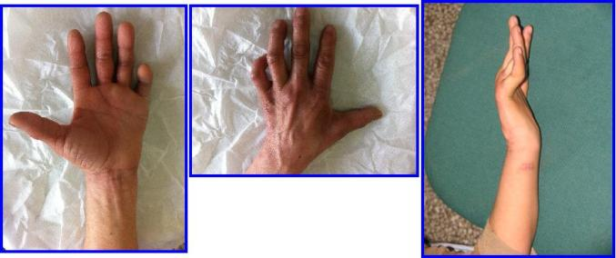患有肘管综合征,具体症状主要为:早期:常感到前臂、手部尺侧及环小指麻木不适,精细活动不灵活,如写字、动筷子等;加重:前臂和手部肌肉的萎缩,特别是手内在肌萎缩,手部尺侧及掌骨间的肌肉明显松弛萎缩,导致出现爪型手畸形等。
